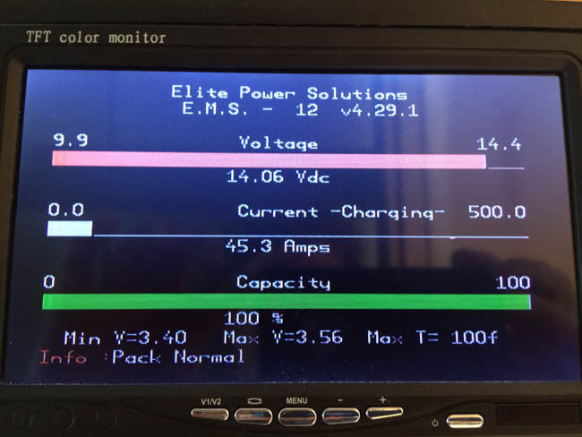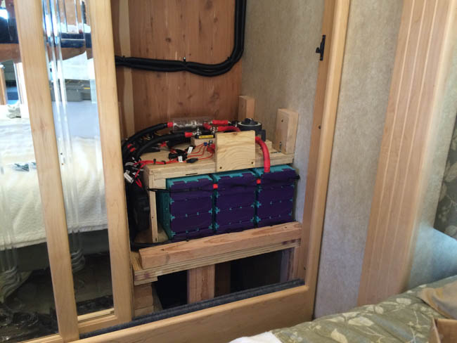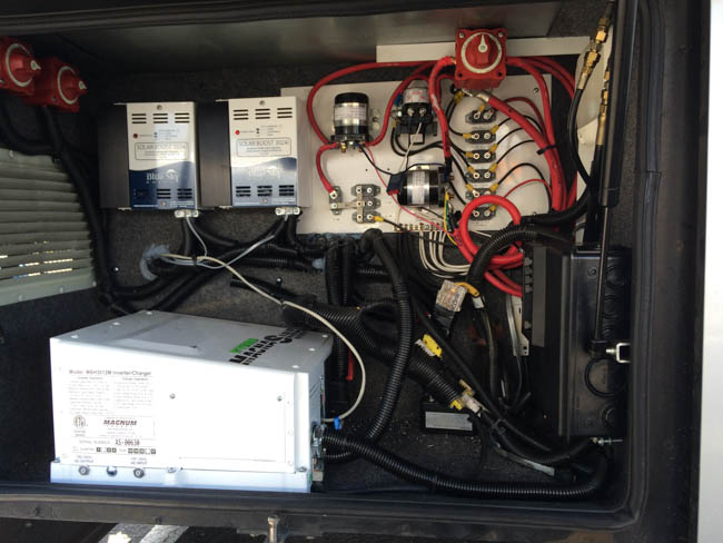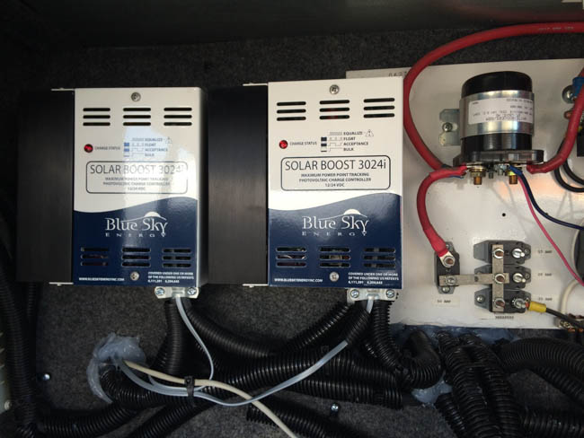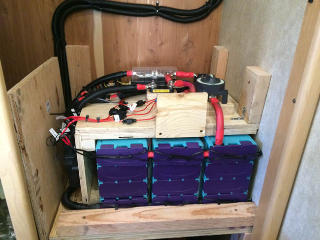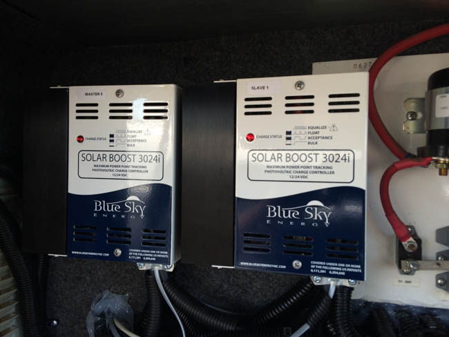This gallery shows you through a large solar power installation. 1,000 Watts of Power, a hybrid inverter, Lithium Ion Batteries, dual charge controllers, and the battery management systems associated with Lithium Ion Solar Installations. If you haven’t guessed by now, there’s more to an RV solar installation than just a few panels and wires to your battery, especially when it comes to Lithium Ion RV Battery plants!
